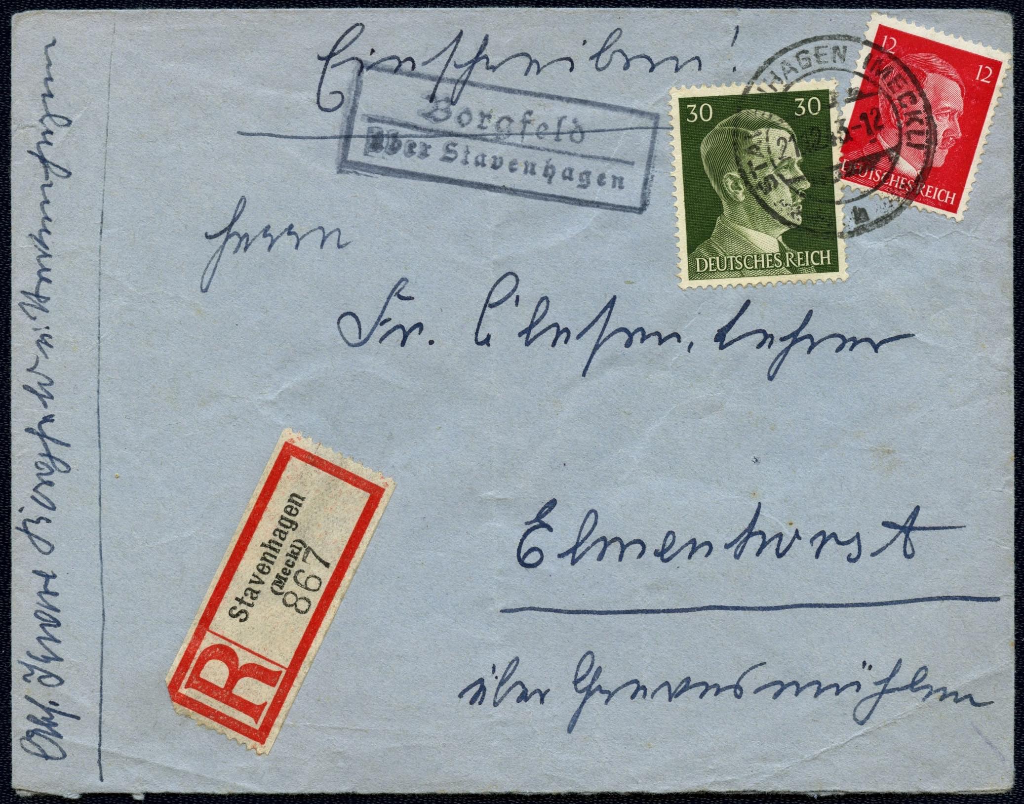 ich zeige heute wieder mal einen Beleg einer Poststelle die bislang nicht in meiner Sammlung war, nämlich Grünholz über Flensburg. Grünholz gehört heute zur Gemeinde Sterup und liegt inmitten der Halbinsel Angeln. Ursprünglich war Grünholz dem Leitpostamt Sterup untergeordnet, da hab ich auch schon mal einen Beleg gezeigt. Die Funktion als Leitpostamt verlor Sterup wie man sehen kann schon vor dem Ende des 2. Weltkriegs. Neues Leitpostamt war Flensburg.