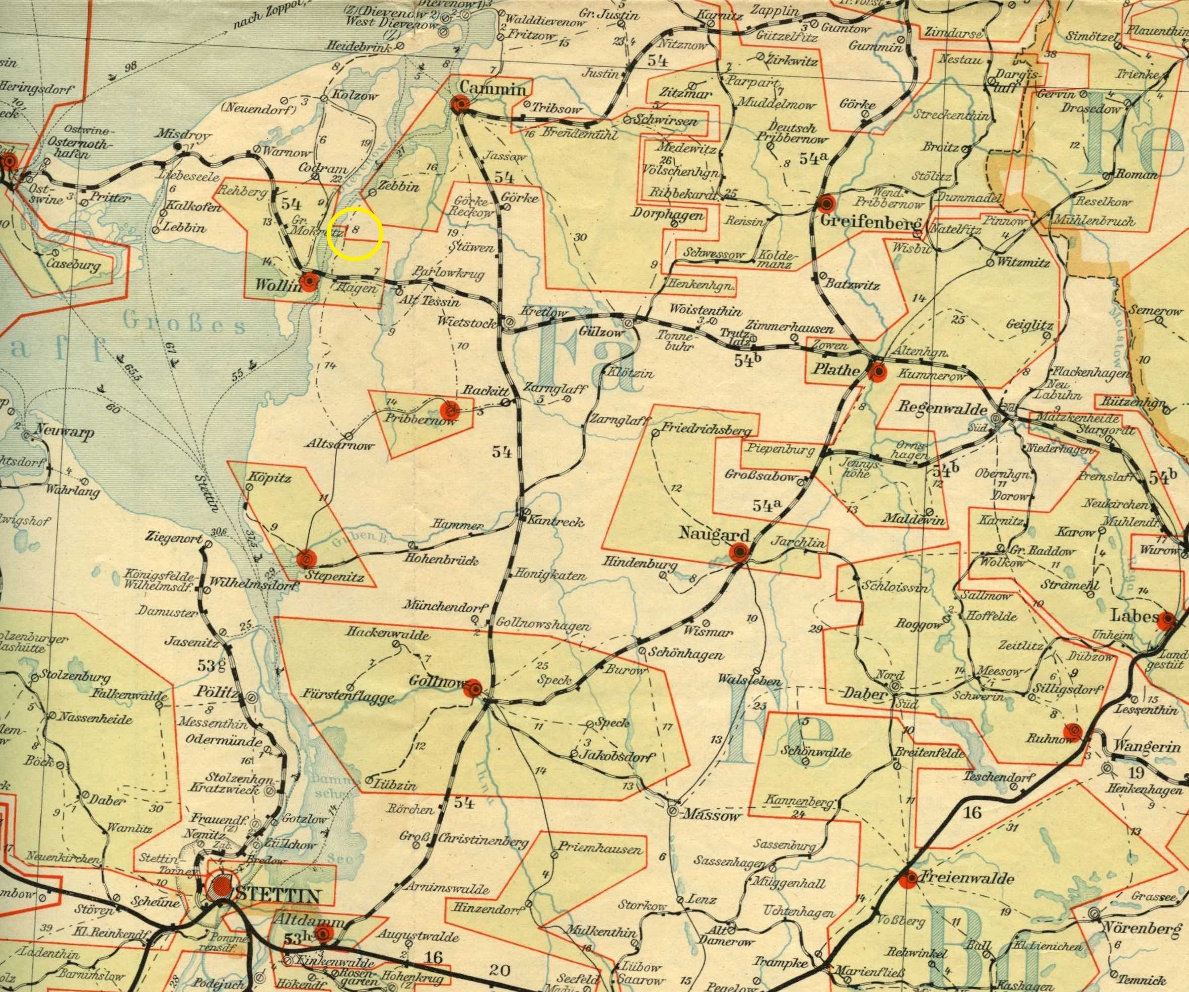 Hier ein Ausschnitt aus der Postleitkarte 4 von 1937. Nemitz liegt etwa in dem markierten Kreis zwischen Cammin (heute Kamien Pomorski), Gülzow (heute Golczewo) und Wietstock (heute Wysoka Kamienska).
