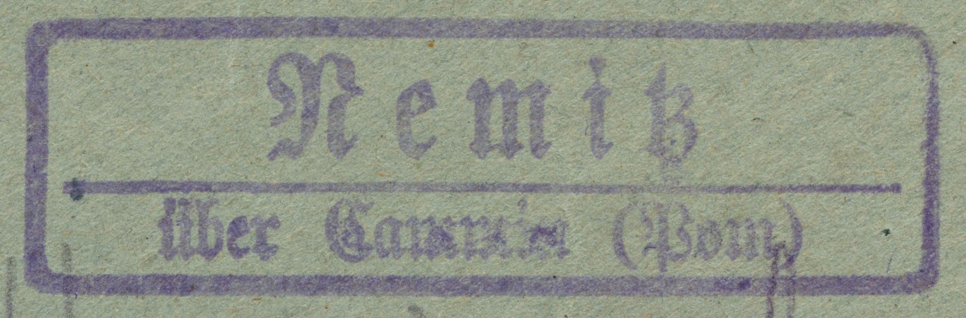 Stempelgerät Rechteckstempel mit abgerundeten Ecken und Strich Nemitz / über Cammin (Pom)