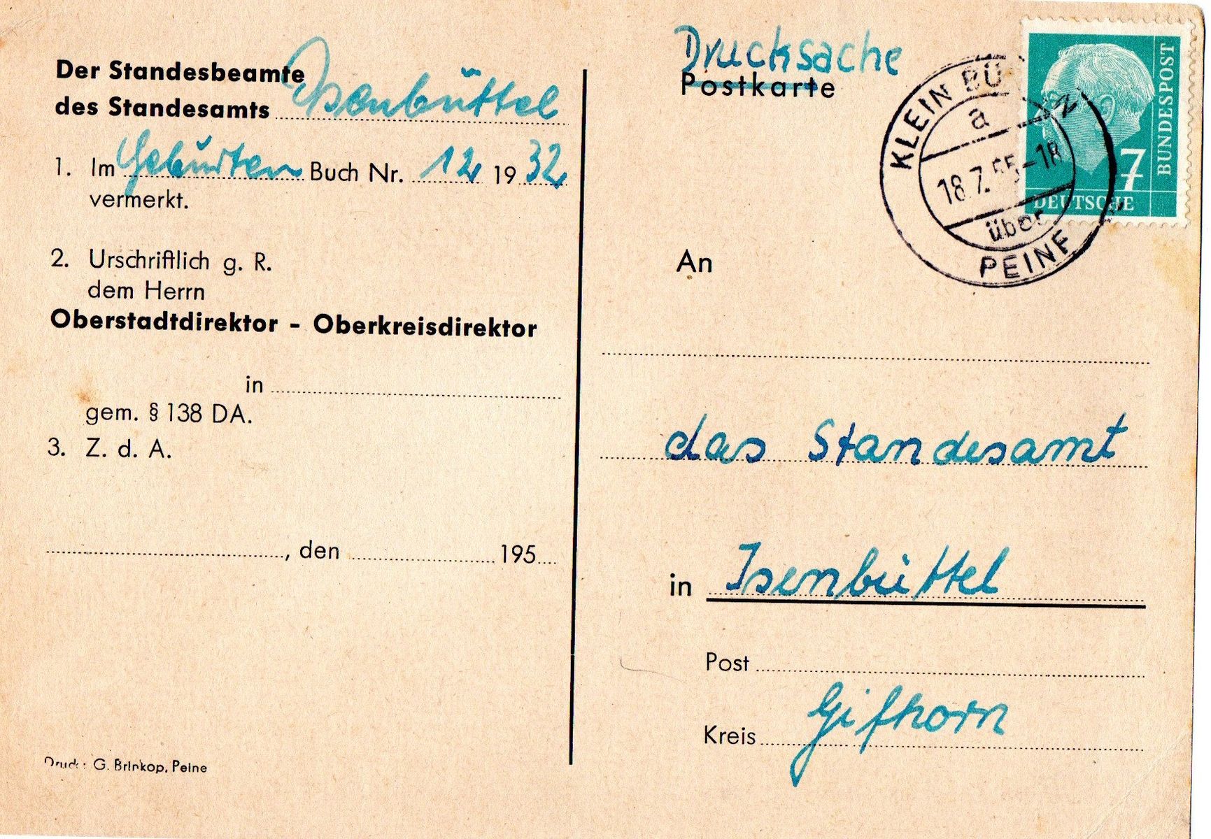 Stempel aus PEINE gesucht bis 1963