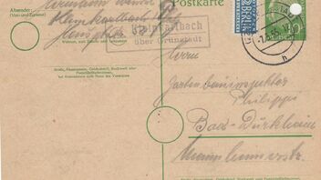 Ortsstempel des Leitpostamts: 22b Grünstadt h 7.3.1955