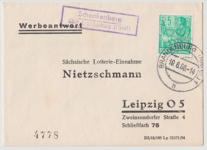 Hier zeige ich 2 Belege von Tieckow aus den Jahren 1953 und 1958.