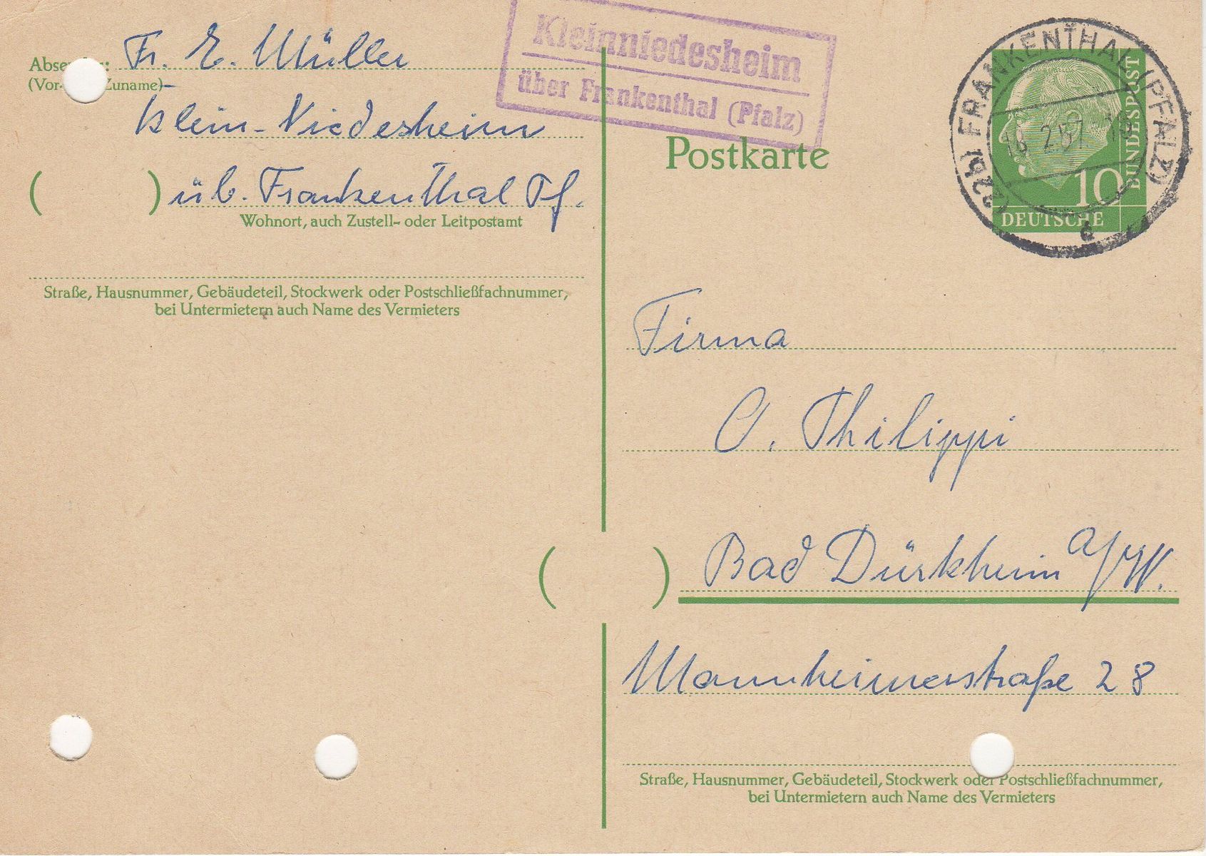 Leitpostamt: (22b) Frankenthal (Pfalz) c 16.2.1957