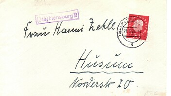 heute zeige ich einen Brief aus Flensburg nach Husum aus dem Jahr 1959 der bei einer Stadtpoststelle in Flensburg aufgegeben wurde. Stadtpoststellen sind schwieriges Terrain, im Handbuch der ARGE sind auch diejenigen Poststellen aufgelistet von denen bislang kein Beleg vorliegt, da sind ganz viele Stadtpoststellen aufgeführt,