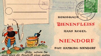 Hier nun ein weiterer Beleg aus Pommerby aus dem Jahr 1957. Wieder mal eine Bienenfleiss-Bestellkarte ![]()