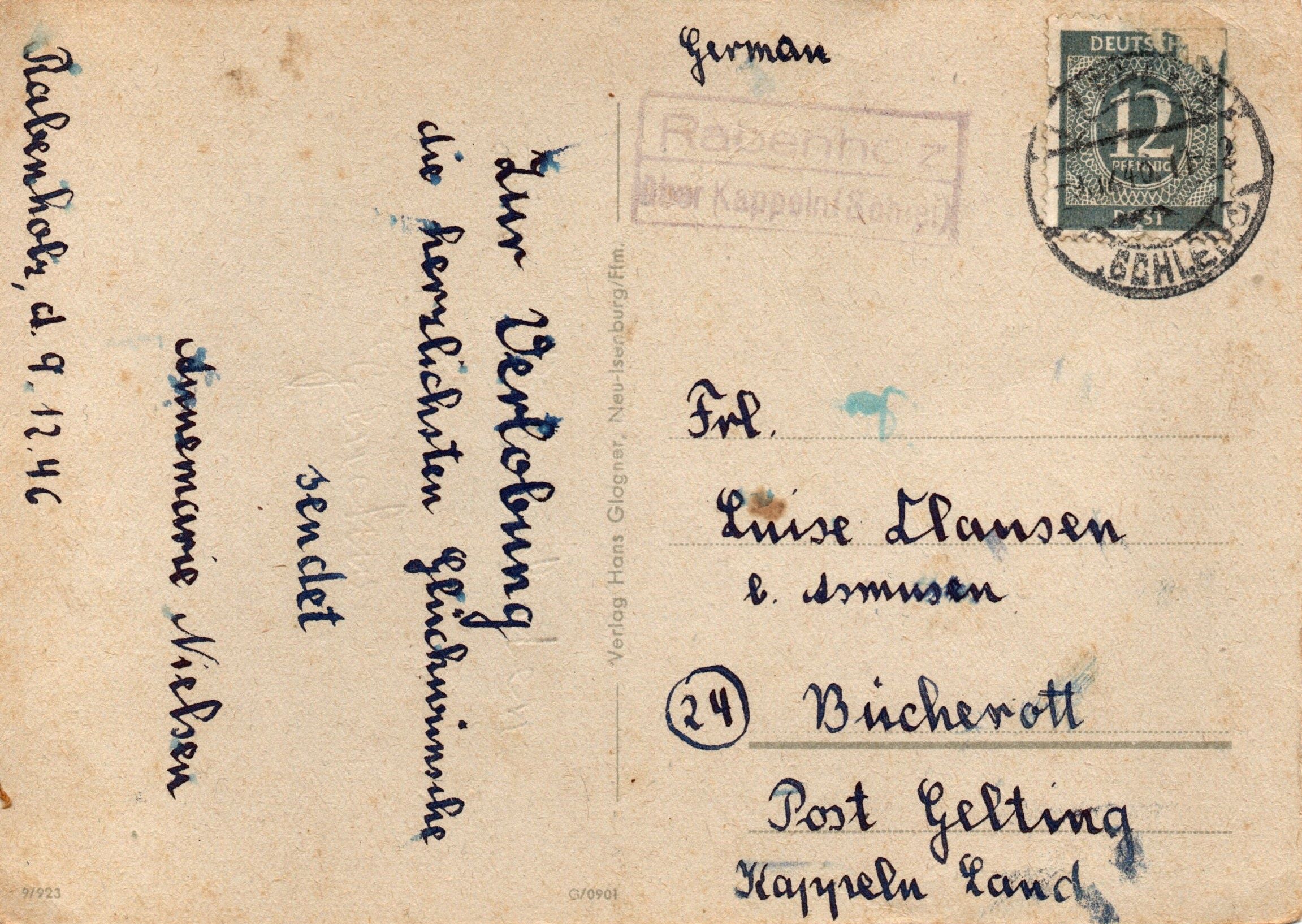 auch von der Poststelle Sandbek habe ich in der Vergangenheit schon Belege zeigen können. Sandbek ist heute ein Stadtteil von Kappeln und die Poststelle war dem dortigen Postamt unterlegt.