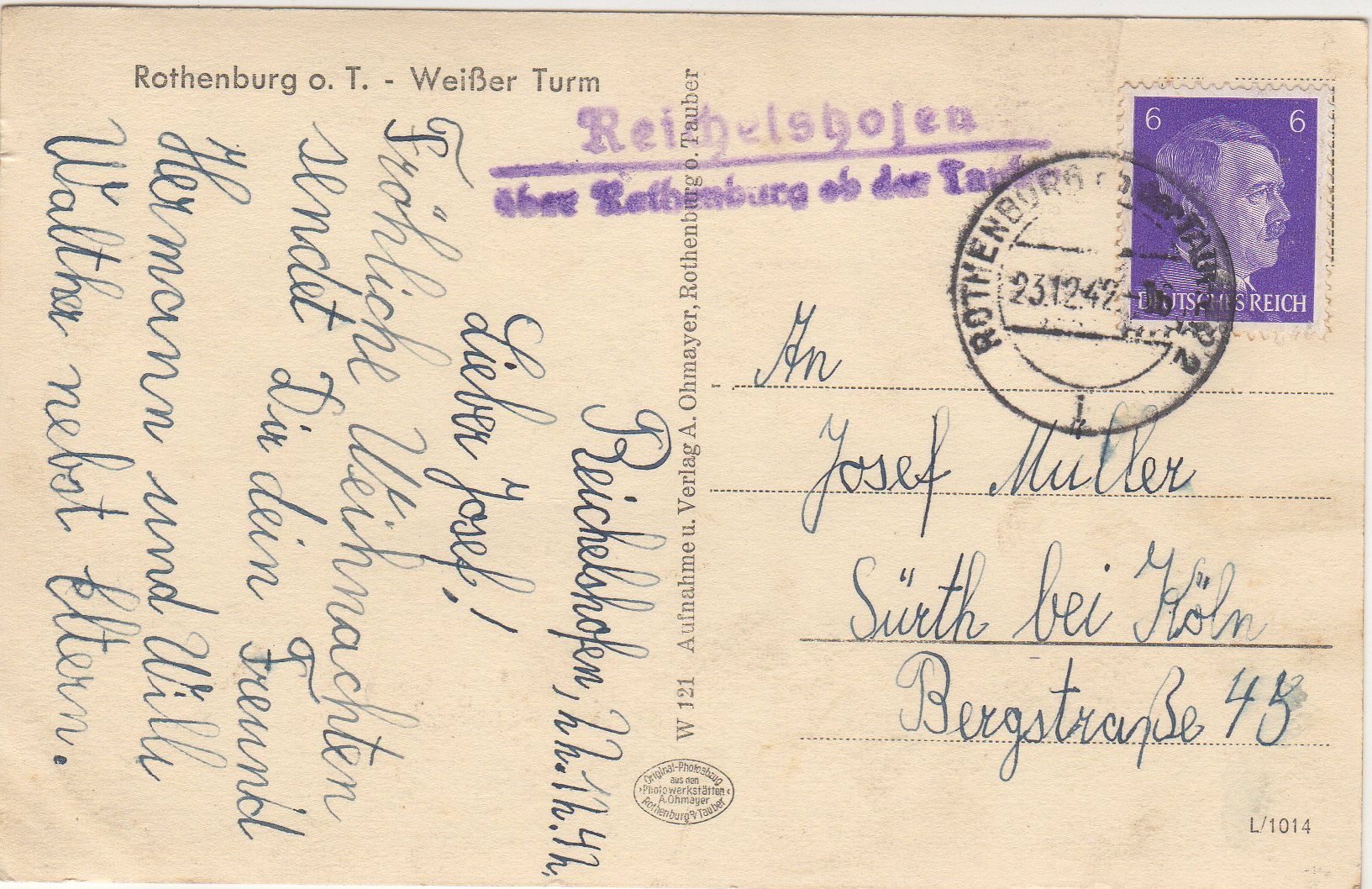 Leitpostamt: Rothenburg ob der Tauber 2 i 23.12.1942