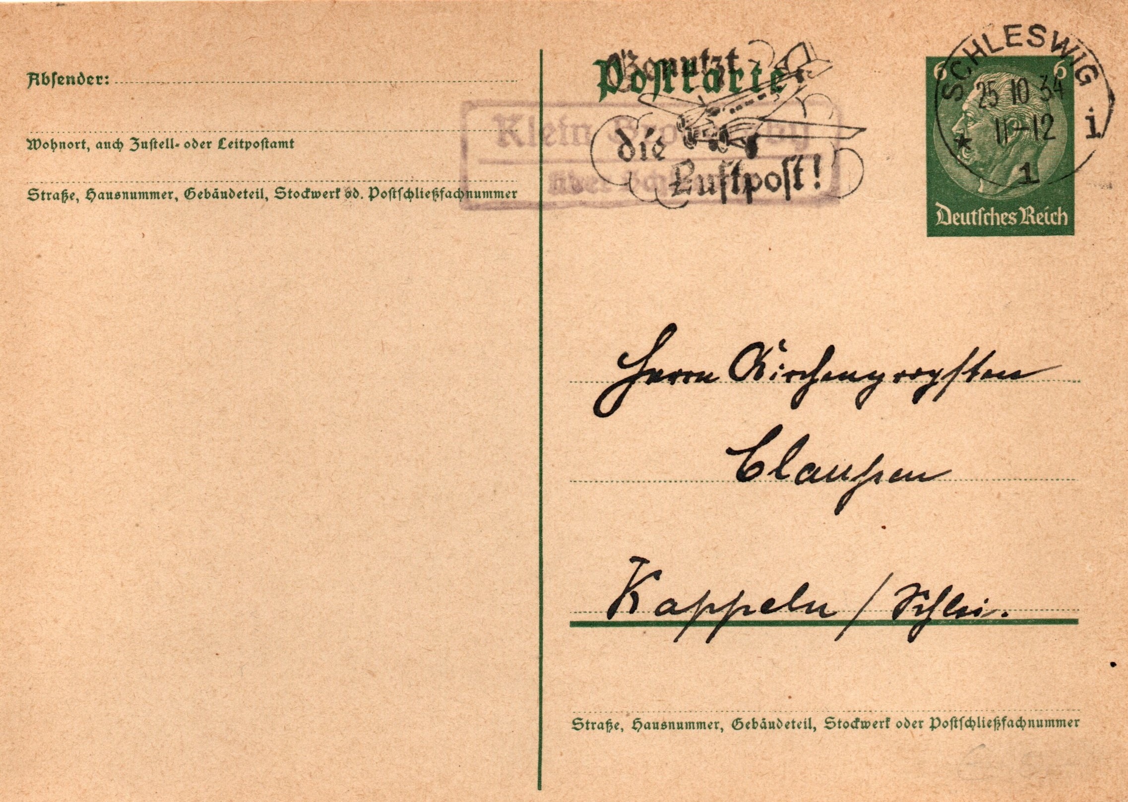 meinheutiger Poststellenbeleg stammt zwar auch aus Schleswig-Holstein, diesmal aber aus einer anderen Ecke.