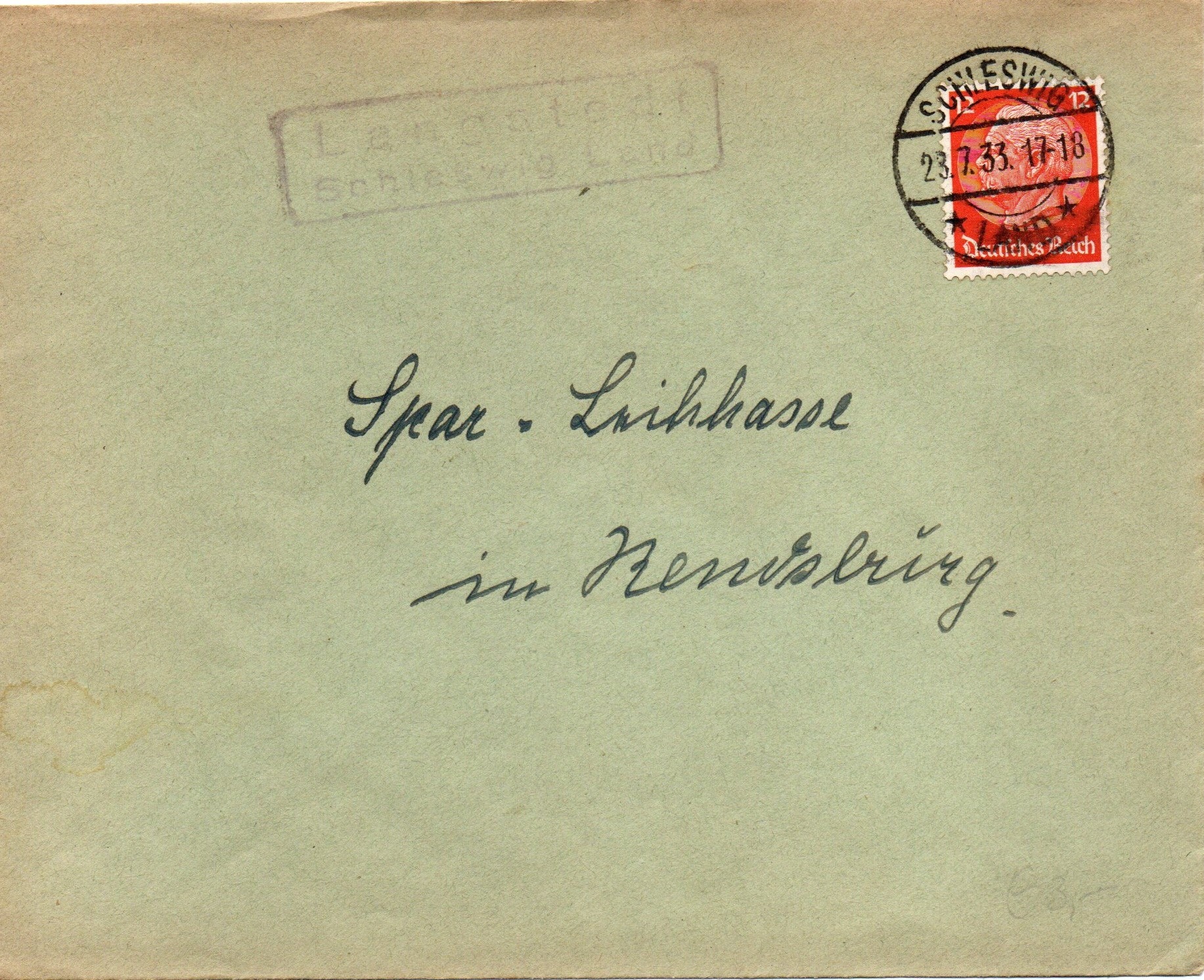 Ein Brief aus Langstedt an die Spar - Leihkasse in Rendsburg aus dem Jahr 1933.