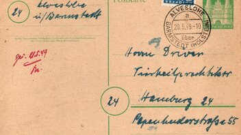 Diesmal eine 10 Pfg. Bauten Ganzsachenpostkarte mit der obligatorischen 2 Pfg. Notopfermarke aus Alveslohe nach Hamburg aus dem Jahr 1949.