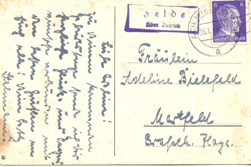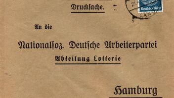 Adressiert war die Drucksache an die NSDAP in Hamburg, Abteilung Lotterie. Damals glaubten die Leute wohl noch dass sie den Hauptgewinn gewählt hätten. Zwölf Jahre später war dann klar, dass das Deutsche Volk die ganz große Niete gezogen hatte.