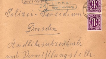 Die beiden 12 Pfg. AM-Post Marken wurden im Leitpostamt mit dem Zweikreisstegstempel "Flensburg 3 (Reichspost) 08.4.46 -20" entwertet. Leider ist der Stempelabschlag sehr schwach sonst würde ich ihn gleich noch bei den Reichspoststempeln zeigen. Es handelt sich hierbei nicht nur um eine Stempeltype der Poststelle II in Linnau, die mir noch fehlte sondern auch um ein neues Frühdatum, dass die nachgewiesene Verwendungszeit um einige Jahre nach vorne verschiebt.