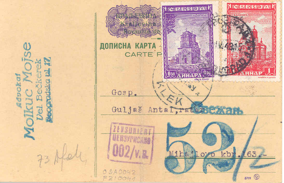 Marke zum vollen Portosatz von 1,50 Din. aufgeklebt werden. Eine