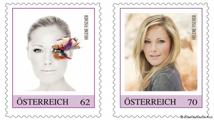 Die deutsche Schlagersängerin Helene Fischer gibt es ab dem 10. September auch auf einem achtteiligen Briefmarkensatz im Nennwert zu 7,34 EUR zu kaufen, allerdings nicht bei der deutschen Post, sondern vom Nachbarland Österreich. ![]()