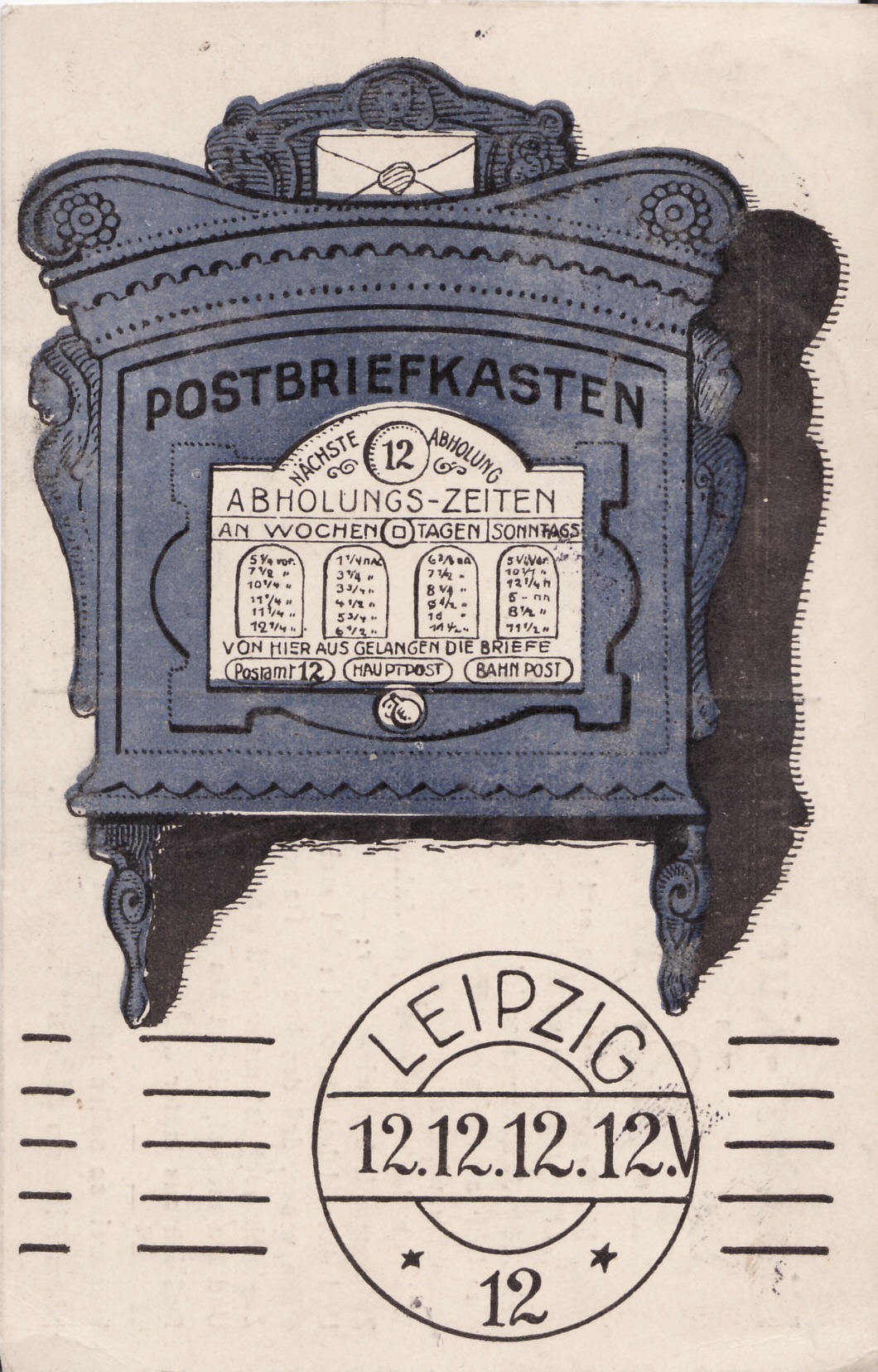 Ich habe eine neue Karte (Privat-GS (?) mit 3 Pf zufrankiert) aus Leipzig vom 12.12.1912 12.00 Uhr Postamt 12 ergattert.