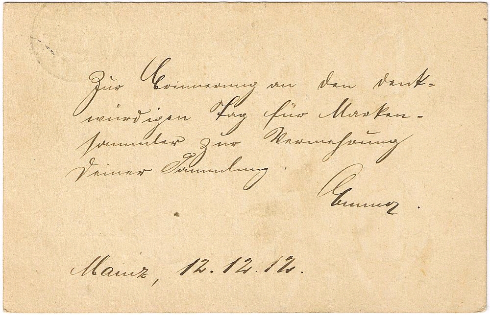 Hier habe ich eine vorgefertigte Karte für den 12.12.1912 Postamt 12 in Leipzig. Kauli hat weiter oben schon mal eine Karte vom 12.12.1912 gezeigt. Der Stempel ist allerdings von Leipzig Leutzsch. Ich hab nicht herraus bekommen, ob es sich um das Postamt 12 handelt. Ich denke nicht, da Leutzsch erst 1922 nach Leipzig eingemeindet wurde. Leider ist die Karte nicht gelaufen. Dafür ist ein Pärchen der DR 84 I vom Unterrand verklebt.