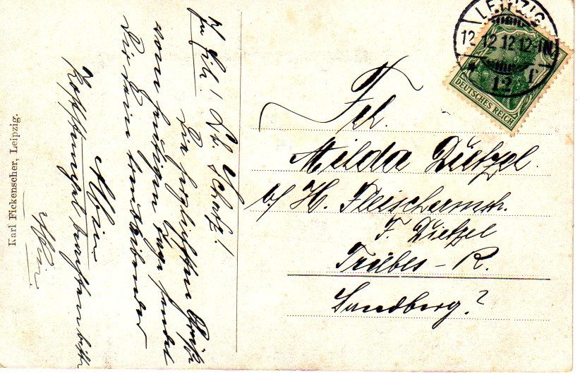 Hier habe ich eine vorgefertigte Karte für den 12.12.1912 Postamt 12 in Leipzig. Kauli hat weiter oben schon mal eine Karte vom 12.12.1912 gezeigt. Der Stempel ist allerdings von Leipzig Leutzsch. Ich hab nicht herraus bekommen, ob es sich um das Postamt 12 handelt. Ich denke nicht, da Leutzsch erst 1922 nach Leipzig eingemeindet wurde. Leider ist die Karte nicht gelaufen. Dafür ist ein Pärchen der DR 84 I vom Unterrand verklebt.
