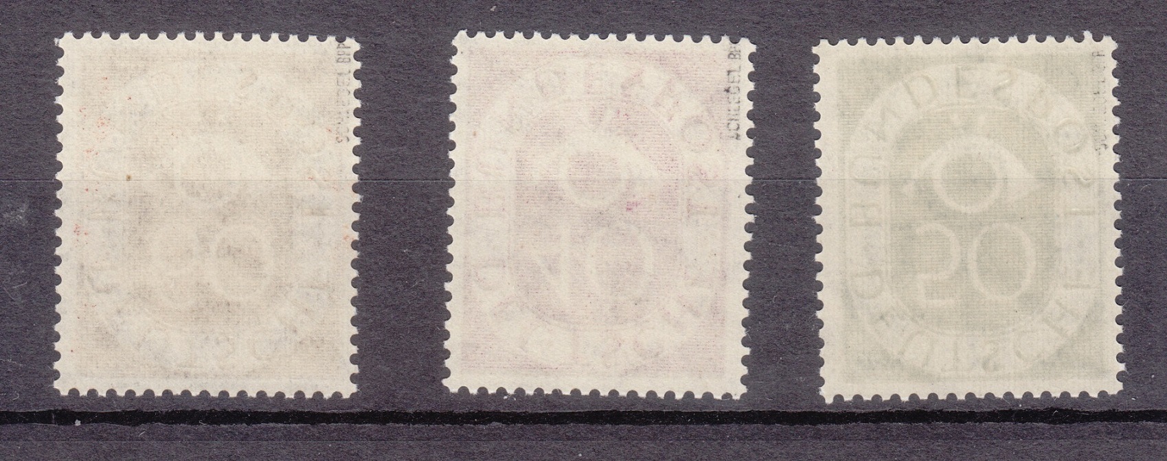 Sehen die Marken denn Nachgummiert oder vorderseitig nach entferntem Stempel aus? (unter UV-Licht fleckig z.B. ?)