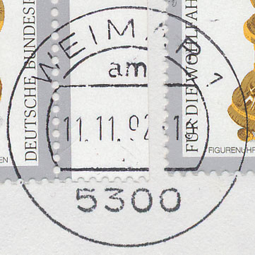Dein ultimatives Spätdatum für den Stempel aus Schwedt 30.6.93 18 Uhr. Werbeklischee "Ab 1.7. Gelten neue Postleitzahlen." habe ich angeregt durch das Sch...sswetter X( X( in meine Doku übernommen, und auch die Stempel von Vichy (und die hat er am 26. April gepostet! Wo ist die Zeit dahin?? ) :O_O: :O_O: :O_O: ) haben bei dieser Gelegenheit Eingang in die Datenbank gefunden.