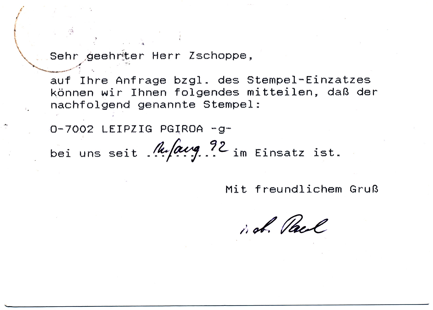 LEIPZIG PGIROA / g / O-7002 am 21.04.1992 (leider nur mit Teilabschlag) entwertet.