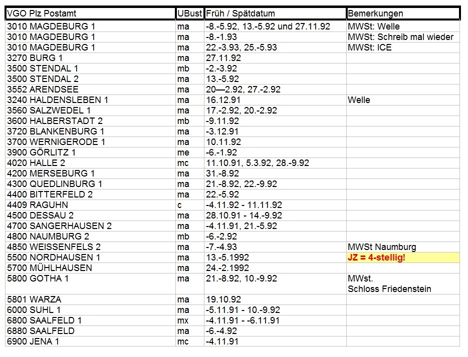Hallo Christoph,von Potsdam ist nur der Stempel mit dem UB bf belegt. (das ist übrigens der selbe, den Du selbst schon einmal auf dem Beleg gezeigt hast, der sich jetzt in meiner Sammlung befindet.)