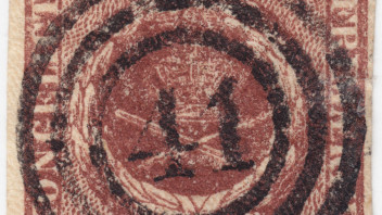 Der gezeigte Nummernstempel "74" auf einer Mi.-Nr. 1I - dunkelbraun, was der Typengegenüberstellung von Carl Aage Møller einer AFA 1 (Ferslew) entsprechen würde.