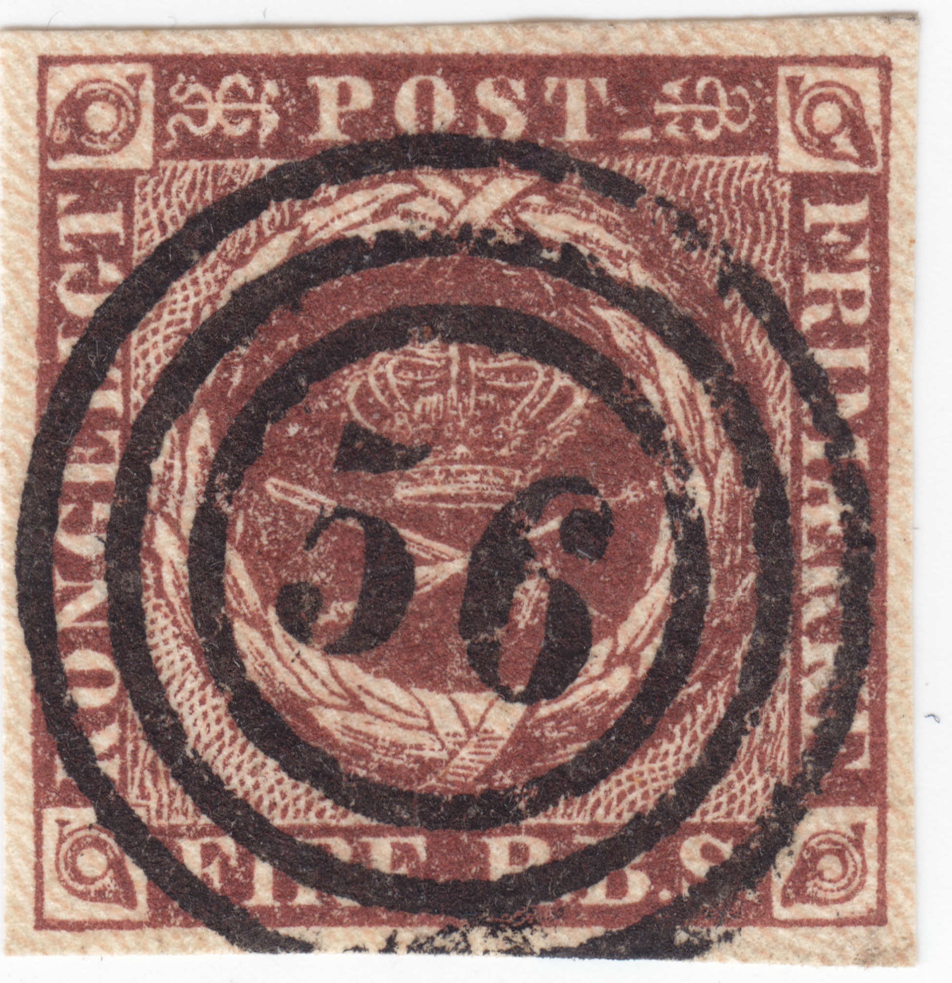Es ist eine 1853 - 4 RBS Thiele II, dark redbrown, 1IIb mit "wirklich ungewöhnlich klarer rotbrauner Farbe mit prominentem Feldmerkmal" (hakmærket).