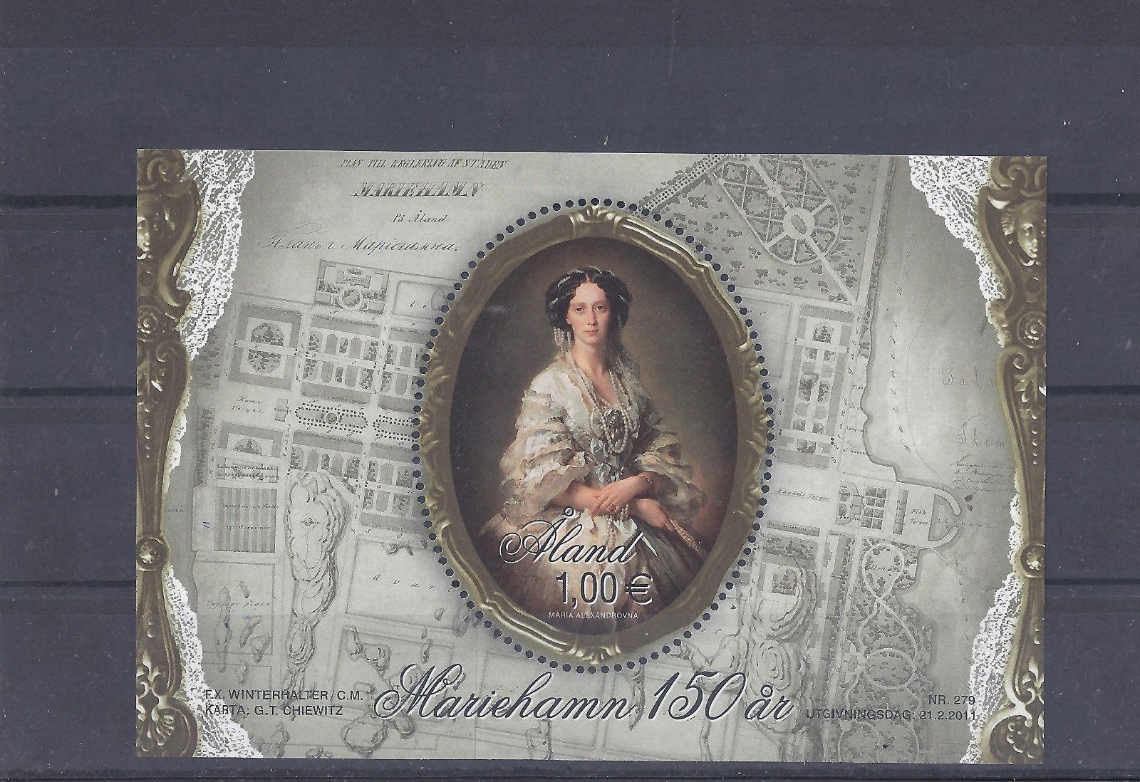 Kürzlich sah ich bei den Aland-Inseln, die im Michel unter dem Mutterland Finnland katalogisiert sind, daß es den Block 11 von 2011, der als Gemeinschafts-Ausgabe mit Russland zum 150. Jahrestag der Stadt Mariehamn auf Aland herauskam, auch noch in einer zweien Version gibt (Mi.-Nr. Block 11 II). Dieser Sonderblock mit einer Miniauflage von nur 4.000 (!) numerierten statt 100.000 normalen Blocks wurde seinerzeit von der Post in Faltkarte, nur auf gesonderte Bestellung zum Preis von 15,- EUR statt wie beim normalen Block zu 1,- EUR Nominale verkauft. Dieser Block ist auch im Druck etwas verändert mit einer Goldauflage von 24 Karat an einigen Stellen der Marke. Die Russen haben keinen Extra-Block verausgabt.