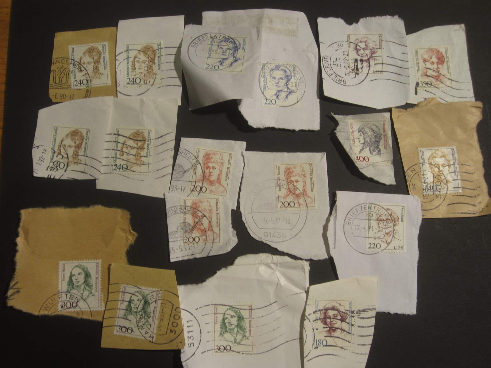 Auch hab ich einpaar Briefmarken aus dem Ausland, da sind die Marken teilweise noch auf den Postkarten drauf. Was mach ich mit denen??