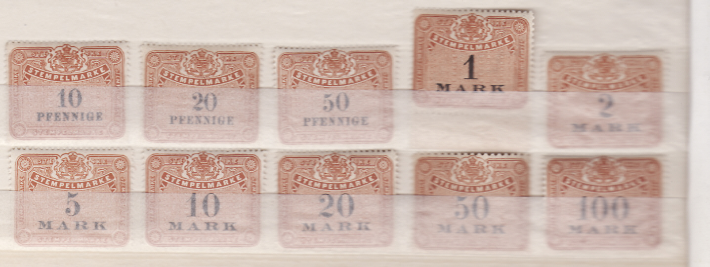 Schau mal unter dem folgenden Link nach, da steht einiges über diese Marken. Mit Briefmarken haben sie nichts zu tun, im Katalog findet man sie nicht. Sie laufen wohl unter Vignetten, wie Steuermarken, Siegelmarken usw.