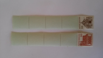 7. lange Streifen Rollenmarken mit Nummern auf der Rückseite