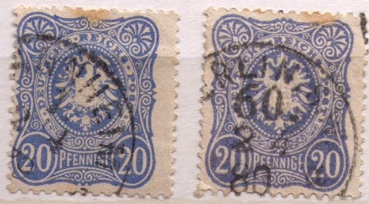 2 Freimarken 20Pf: Rechsadler im Oval von 1875