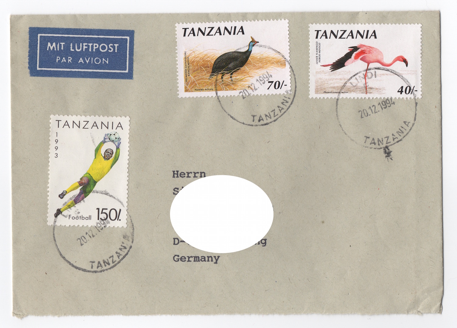 PS: Wurde der Luftpostaufkleber mit nach Tanzania genommen und dort dann aufgeklebt?