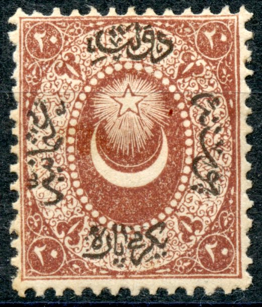 Bei der ersten Marke könnte es sich um die Mi.-Nr. 5 in brauner Farbe, demnach also Portomarke Nr. 5 zu handeln. Diese Marke sollte die dargestellte schwarze Umschrift des Typs I aufweisen. Für mich als absolute Niete, was das Entziffern arabischer Schriftzeichen betrifft, sieht es so aus, als ob das obere und auch die scharzen Worte links und rechts identisch mit der Abbildung der Type I sind, das untere Wort allerdings sieht m.M.n. völlig anders aus und entspricht für meine Begriffe auch in keinster Weise den anderen drei infrage kommenden Umschrifttypen. Weiß hier evtl. jemand weiter?