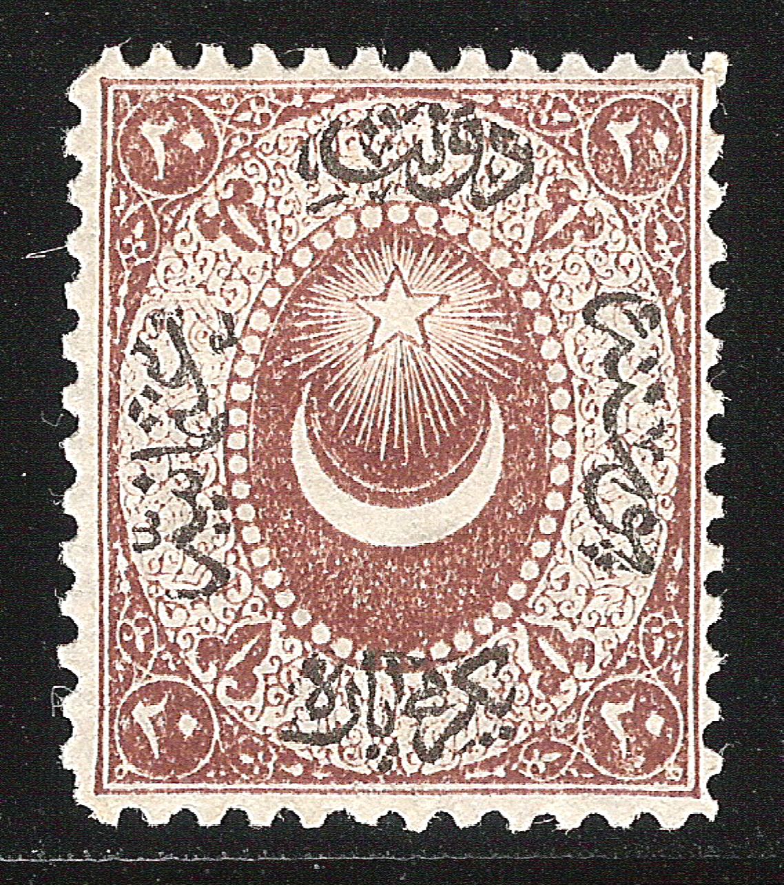 Bei der ersten Marke könnte es sich um die Mi.-Nr. 5 in brauner Farbe, demnach also Portomarke Nr. 5 zu handeln. Diese Marke sollte die dargestellte schwarze Umschrift des Typs I aufweisen. Für mich als absolute Niete, was das Entziffern arabischer Schriftzeichen betrifft, sieht es so aus, als ob das obere und auch die scharzen Worte links und rechts identisch mit der Abbildung der Type I sind, das untere Wort allerdings sieht m.M.n. völlig anders aus und entspricht für meine Begriffe auch in keinster Weise den anderen drei infrage kommenden Umschrifttypen. Weiß hier evtl. jemand weiter?