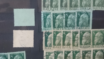 Habe den Großteil der Marken auf grünem Papier, aber auch einige auf weiß gräulichem Papier.
