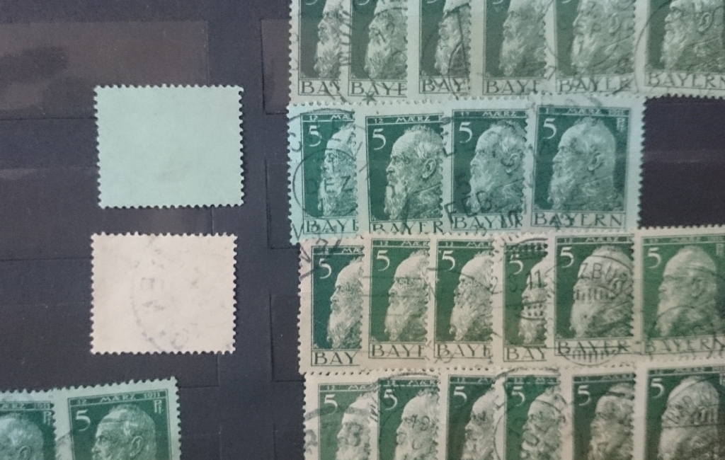 Habe den Großteil der Marken auf grünem Papier, aber auch einige auf weiß gräulichem Papier.