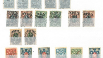 Die Marken der dritten Karte sind Militärausgaben des I. Polnischen Korps während des I. Weltkrieges. Auch diese Marken sind selten und fälschungsgefährdet. Du findest diese am Schluß des Landes (Polen). Die beiden unteren Reihen sind diverse Marken mit geringem Wert.