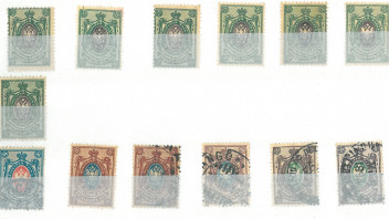 Auf der zweiten Karte sind zumeist Marken für die russische Post in China und der Levante. Auch diese Marken haben einen eher geringen Wert und dürften, da keine Abarten dabei sind, einen echten Aufdruck haben.