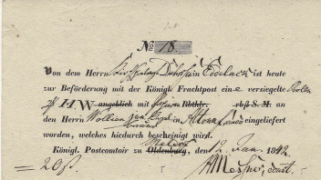 Kürzlich flatterte mir ein Postschein aus Meldorf aus dem Jahr 1842 ins Haus. Aber nicht irgendein Postschein, sondern ein Postschein, der für das Postcomtoir in Oldenburg gedruckt und bei dem die Ortsbezeichnung handschriftlich in Meldorf abgeändert worden war.