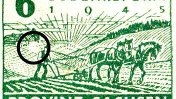 Kennt jemand diesen Plattenfehler, könnte es sein, dass im gezeigten Bild die 6-Pfennig-Marke (rechts) diesen Plattenfehler hat?
