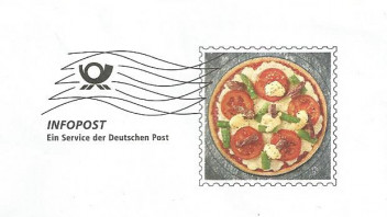 Diese leckere Pizza ziert einen Infopost-Umschlag, den ich kürzlich erhalten habe.