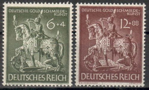 Vom Deutschen Reich gibt es 4 Marken mit einem Nennwert von jeweils 12 + 88 Pfennigen, jeweils verausgabt in einem Satz von 2 Werten. das entspricht einem Aufschlag von 7,33 % auf dien Nominalwert.