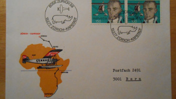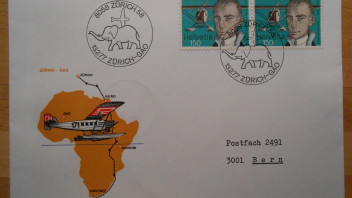 3: Mittelholzer-Afrika-Gedenkflug 1927-1977 mit Sonderstempel Nashorn (2x vorhanden)