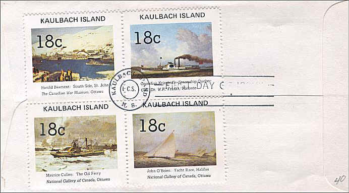 Immer wieder findet man irgendwo in der weiten Welt Briefmarken von Ländern, die man noch nie zuvor gehört oder gesehen hat. Hier z. B. Marken der Kaulbach-Insel, ein winziges Inselchen in der Mahone Bay in der canadischen Provinz Nova Scotia (Neuschottland). Den Lokalpostverkehr auf der Insel gibt es seit 1971.