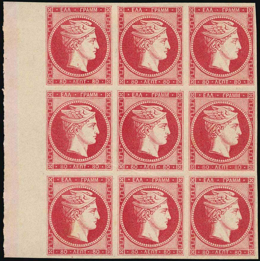 Anbei ein Block von 9 Pariser 80-Lepta. Die zentrale Marke hat eine ... nicht-Pariser-Augenbraue!