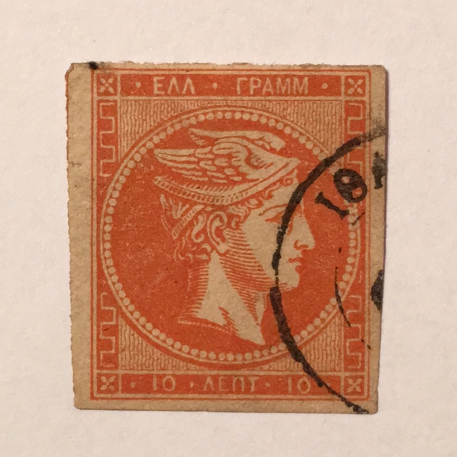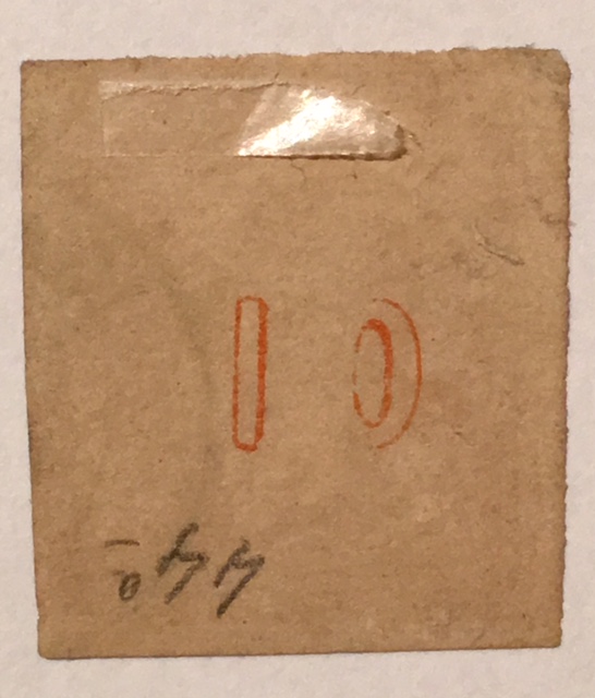 ...wobei man bei dieser Marke wiederum wunderschön den waage- und senkrecht linierten Hintergrund des Medaillons (Spezialität von Vasilis ;), s. S. 4) ("laid paper") erkennen kann, so denn der Scan nicht trügt :D