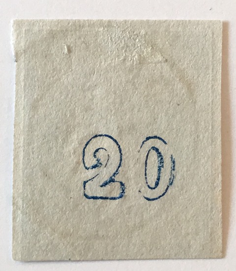 Weiterhin zeigt die Marke den Plattenfehler "Weiße Linie hinter dem Nacken" (allerdings sehe ich kleine Differenzen bei dessen Position im Vergleich zur Abbildung im Karamitsos).