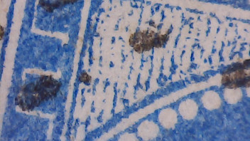 Heute zeige ich (hoffentlich :D) eine gebrauchte Hellas Nr. 31 ("Special Printing", 1870 von Leipziger Druckern hergestellt). Merkmal dieser Ausgabe sind einerseits die auffallend hellen Ecken des Markenbildes, die fast den Eindruck stark abgenutzter Platten vermitteln, andererseits die ganz feinen Wangenschatten. Ich hatte zunächst den Eindruck, dass in den besagten Markenecken Papierverletzungen vorliegen, ein Blick unter mein "Lidl-Elektronenmikroskop"