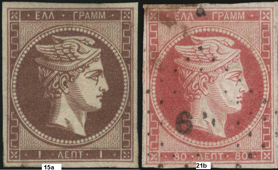 Zum Abschluß meiner 10 Lepta Werte will ich noch zwei Neuzugänge zeigen. Es sind jeweils Paare der beiden "Cream Paper" Ausgaben, Nr. 50 und 56.